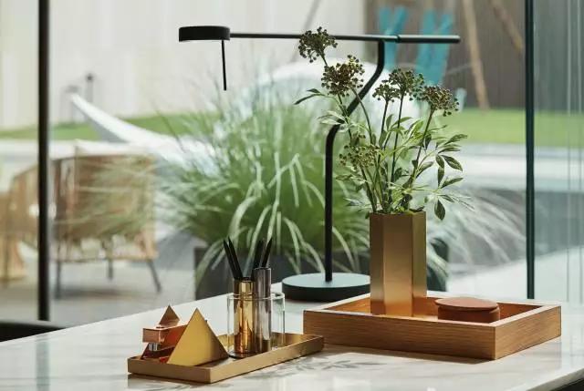 利用建筑層高優(yōu)勢(shì),在沙盤(pán)區(qū)上方創(chuàng)造層次豐富、光影虛實(shí)變化的幾何造型,強(qiáng)化空間錯(cuò)落感。通過(guò)動(dòng)軸引伸便是洽談區(qū)。設(shè)計(jì)方案不希望洽談區(qū)和接待區(qū)域過(guò)于直接,通過(guò)造景形式將兩個(gè)空間自然串聯(lián)并分割開(kāi)來(lái)。花藝在靜水面的映射下,光與影默契配合,有效避免了接待臺(tái)前的空曠,也營(yíng)造出了整體空間的美學(xué)秩序。