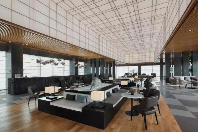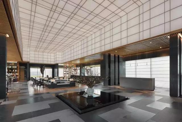 借由東方園林式的假山,打造出“未若柳絮因風(fēng)起”的雪景,美如水墨畫(huà)、細(xì)膩至極。這與圍繞式洽談方式布置相結(jié)合,巧妙處理好空間形態(tài)和陳設(shè)之間的關(guān)系。大尺度挑高設(shè)計(jì),加上頂部有序交互的線條,讓空間極具延展性,通透敞亮的照明效果搭配藝術(shù)性燈光點(diǎn)綴,使整體氛圍更顯大氣與品位。該空間通過(guò)主體、功能位置、通透的序列式的立面關(guān)系,自然分割空間視線,同時(shí)又實(shí)現(xiàn)了將光線引入到室內(nèi)的最大化。