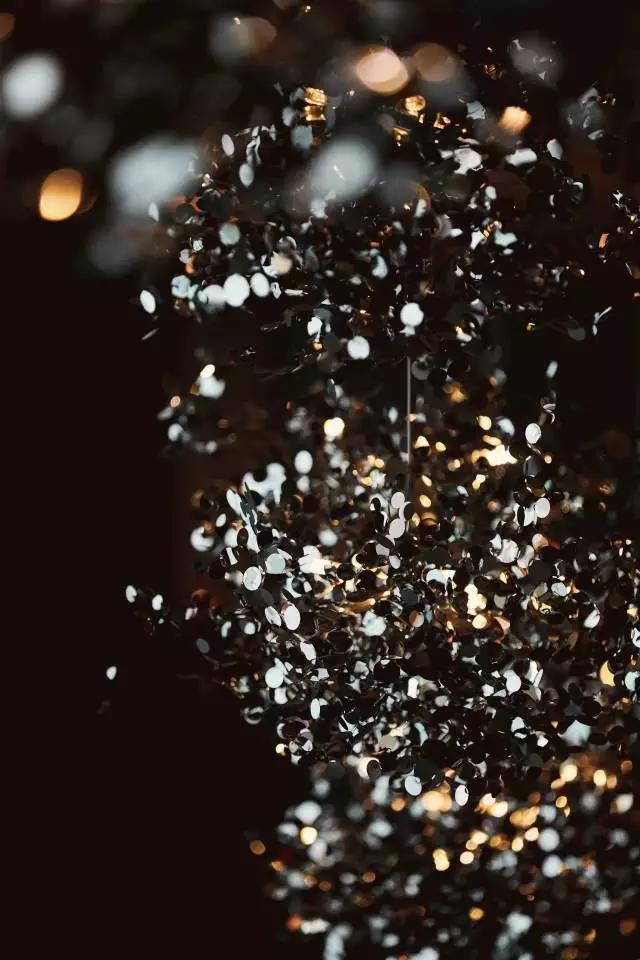 水吧臺(tái)以毛鑿面的形式呈現(xiàn),質(zhì)樸卻別具一格。而光線透射在吧臺(tái)頂面,又與書(shū)架、吊燈以及頂部的木百葉形成互動(dòng),勾勒出繽紛的空間輪廓。粗獷肌理感的石材,又與花瓣式的吊燈形成材質(zhì)上的鮮明對(duì)比,晶瑩璀璨。