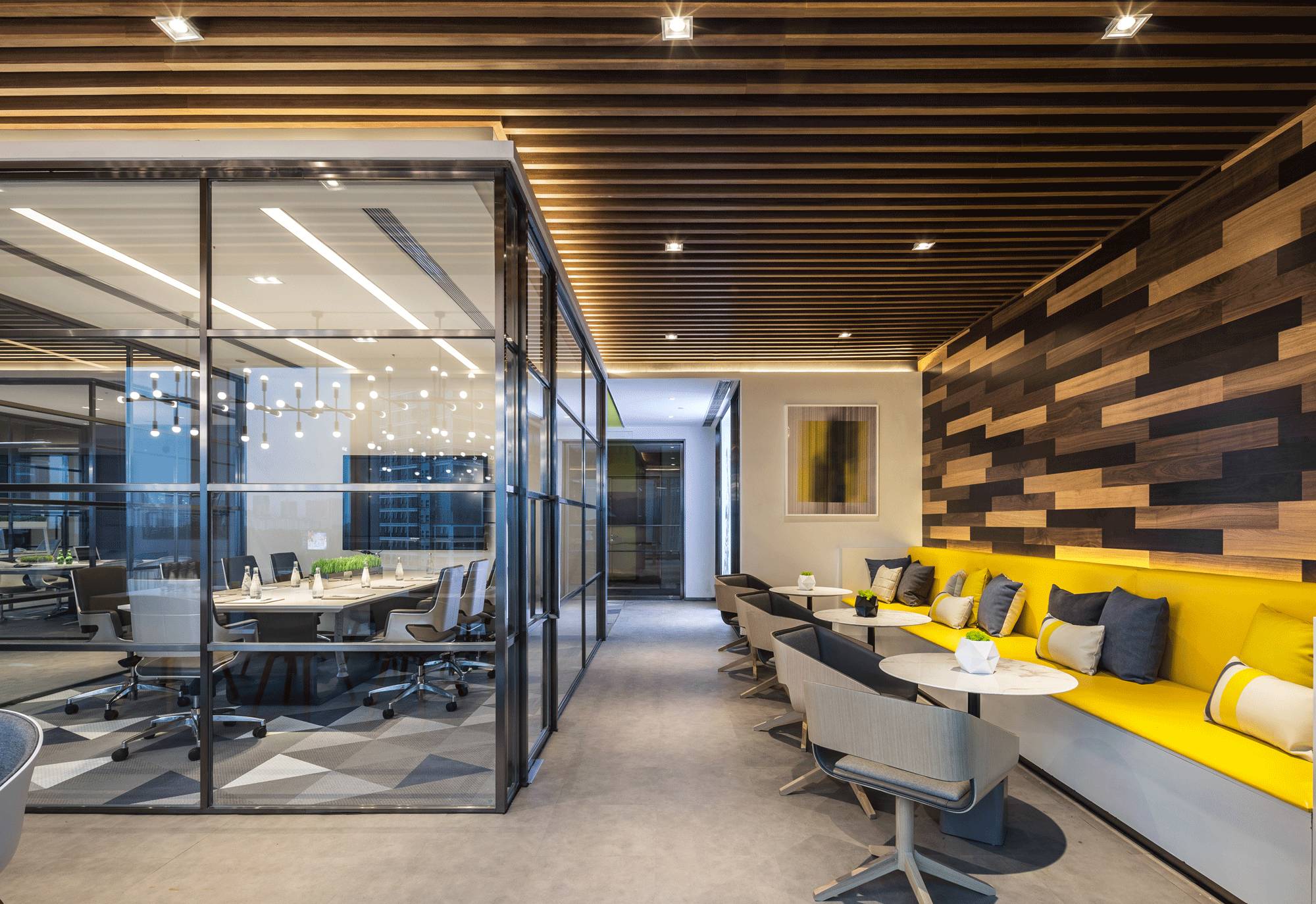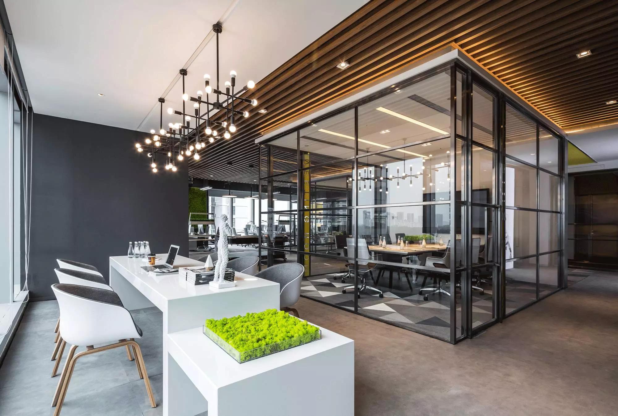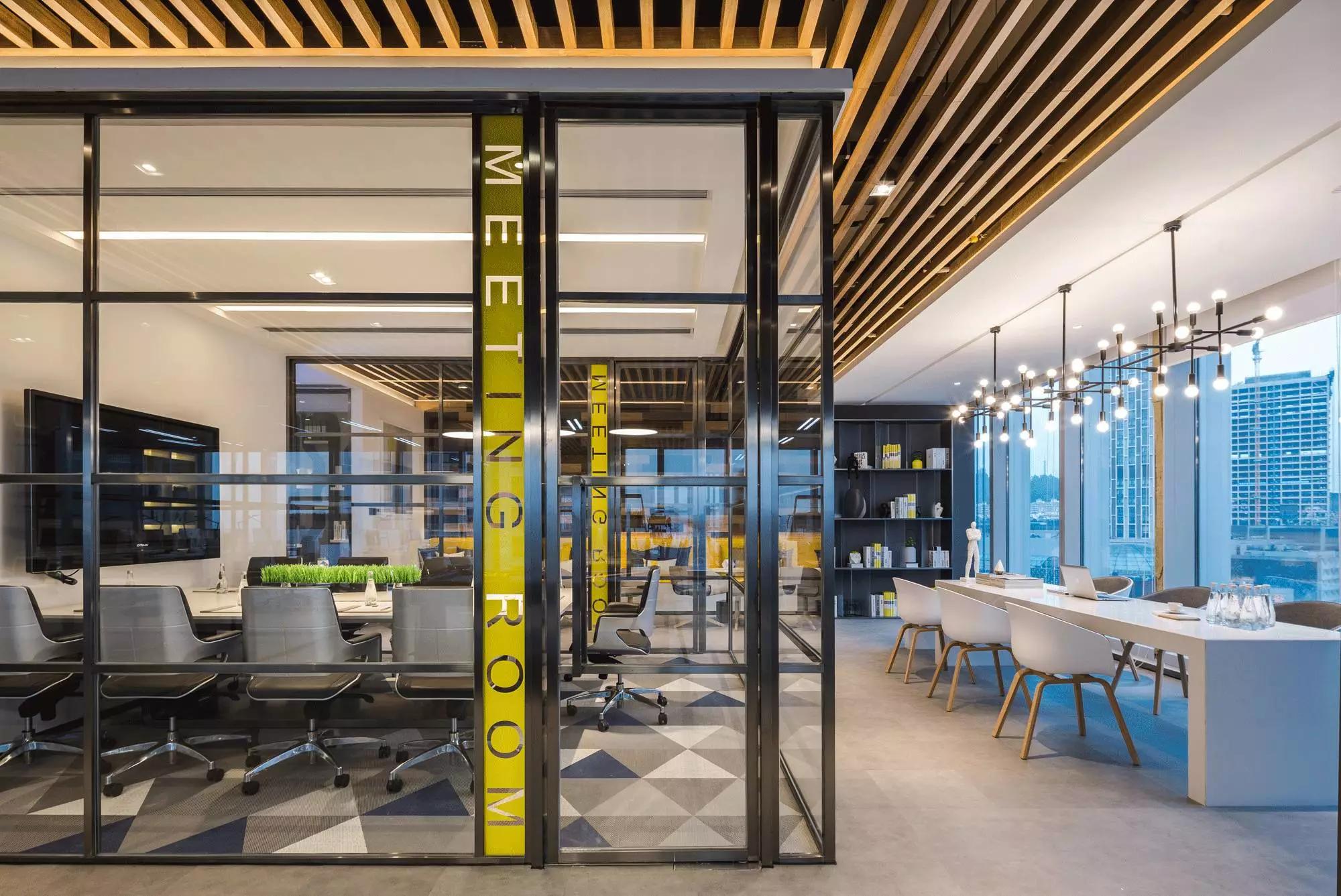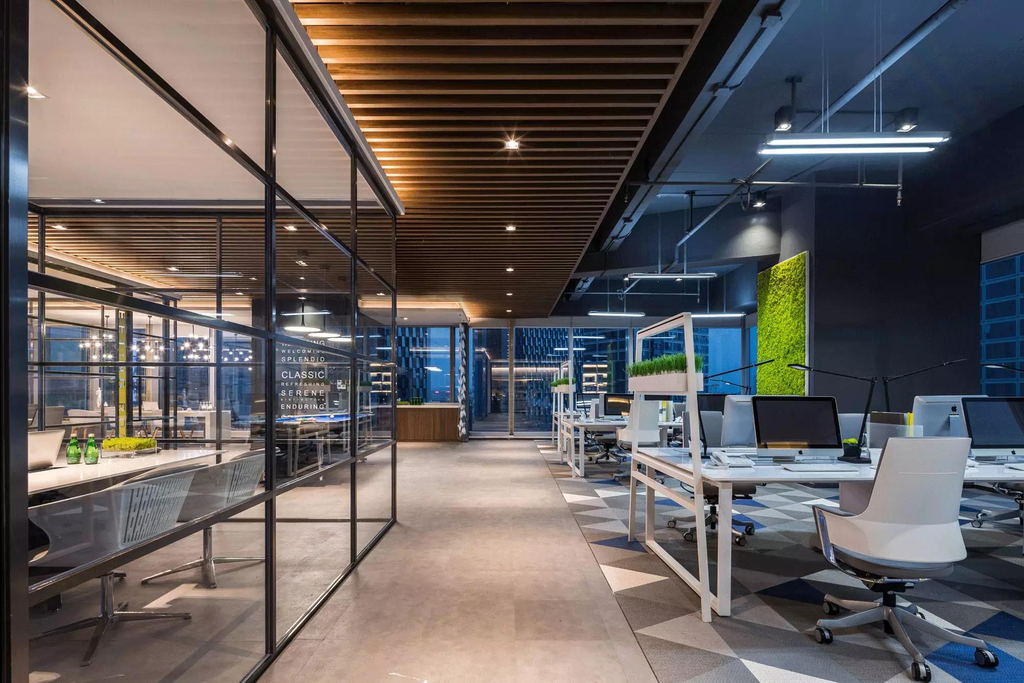 采納了“自由”空間慣用的開放式設計,拋棄了沉悶的障礙物、墻壁,僅預留必要的墻體,并用少數(shù)玻璃分割不同的空間,多人會議室、小組會議室的靈活設計,動線連貫流暢,充分滿足了現(xiàn)代科技空間“樂活、高效”的辦公需求。