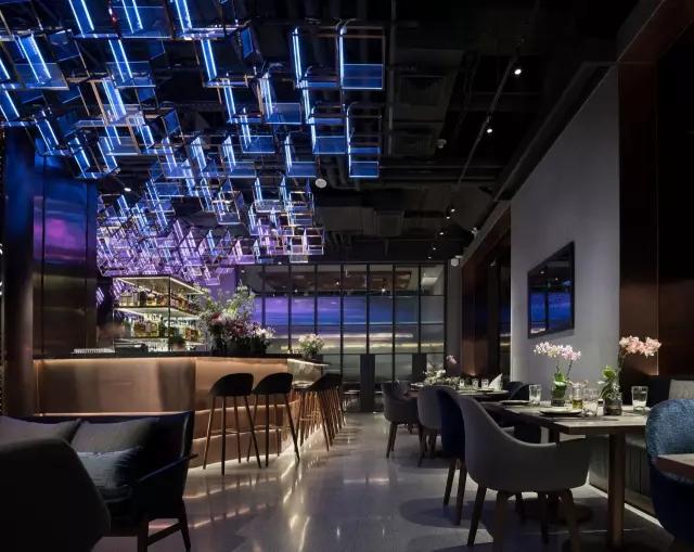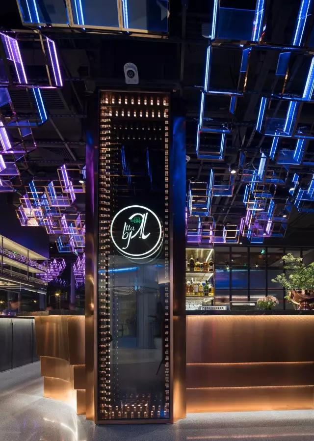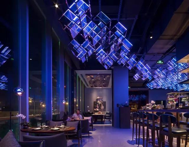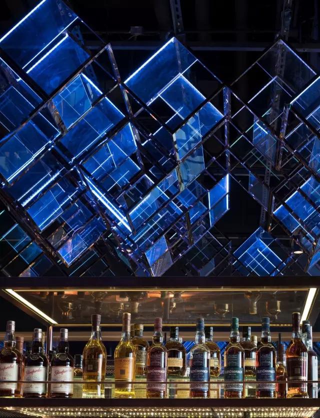 attabj意大利餐廳最美之處便是天頂上的藝術(shù)燈群,設(shè)計師通過抽象化、藝術(shù)化的手法,將這一感官體驗濃縮為空間當(dāng)中的一組裝置,透明亞克力單元體如同酒杯內(nèi)的冰塊,而不斷變幻的LED燈光就像是色彩斑斕的酒體,兩者相互反應(yīng)形成夢幻迷離的光影效果。