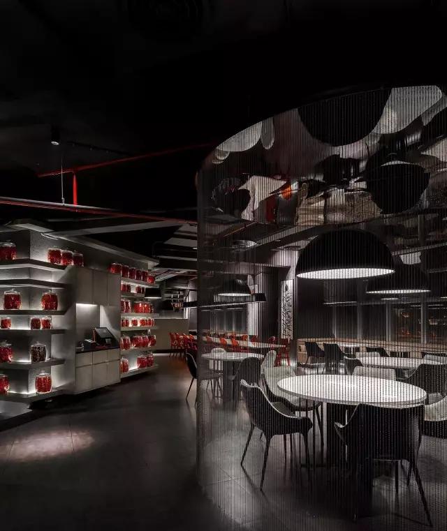 小辣椒湘菜餐廳空間,是以空間的多樣性為主軸。餐廳創(chuàng)始人提出以辣椒裝飾空間,設(shè)計(jì)師通過對(duì)“小辣椒”這個(gè)設(shè)計(jì)字符的不斷重復(fù),給空間增加藝術(shù)畫及創(chuàng)意燈飾,成為空間裝飾的細(xì)節(jié)。整個(gè)空間的體量不算特別大,但有下沉式空間設(shè)計(jì)。用于分割空間的雨滴式珠簾,似動(dòng)而靜的雨滴隔斷簾營(yíng)造親密又放松的用餐空間。