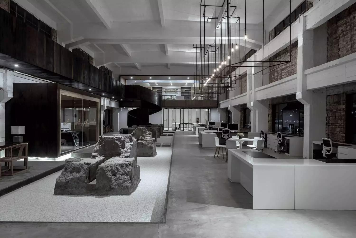 群組辦公空間保留的舊石墩是場所精神的集中體現(xiàn),正是它,喚起了空間裡地方風貌的意象。