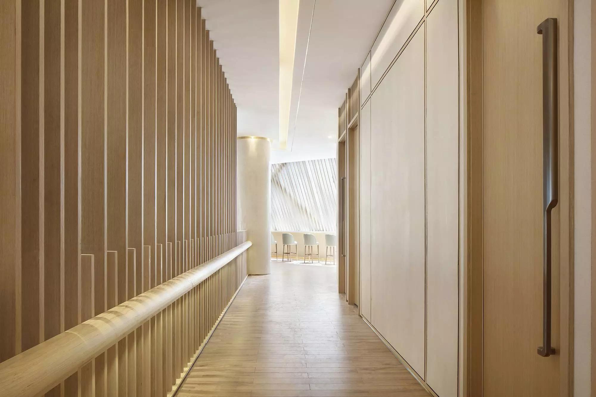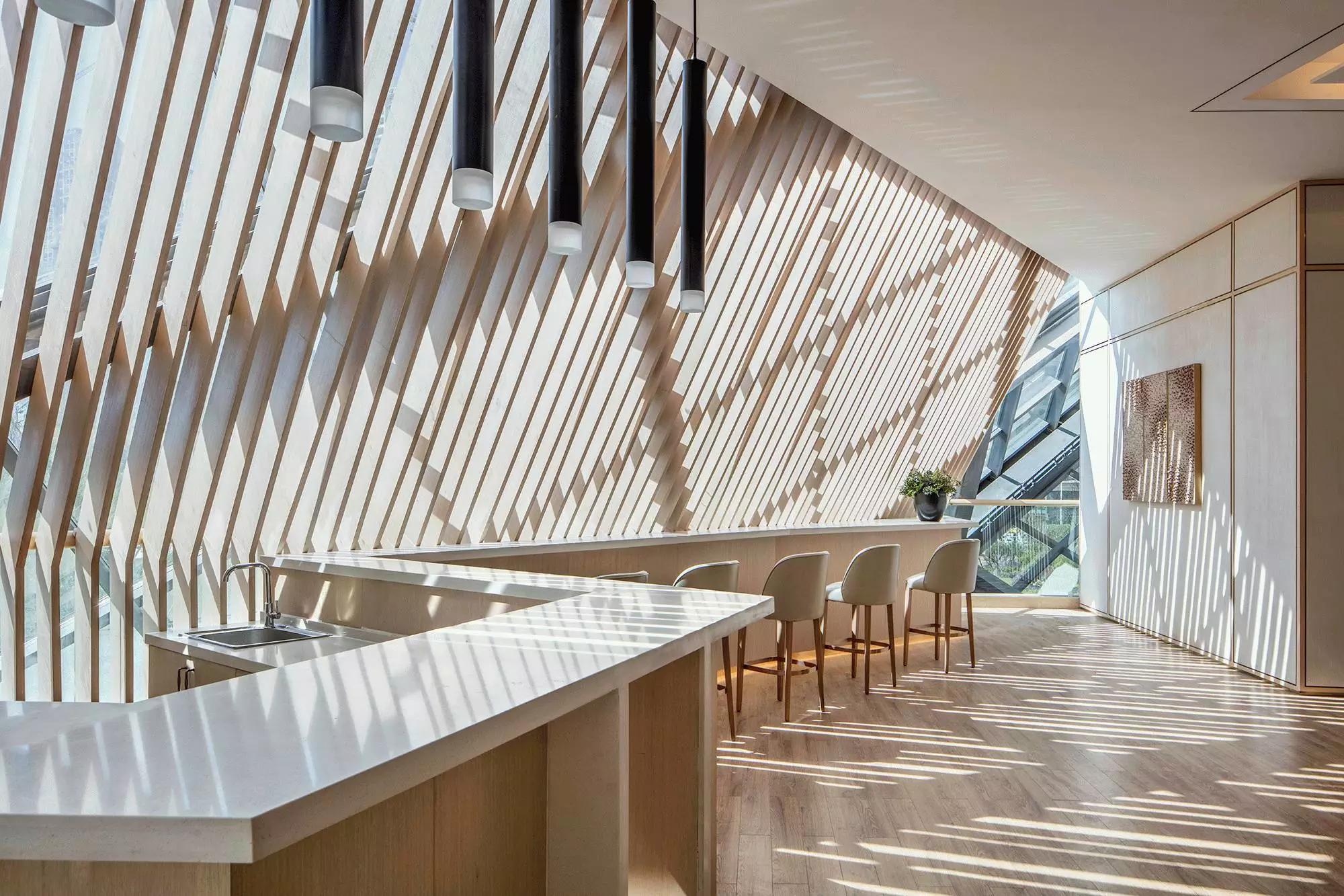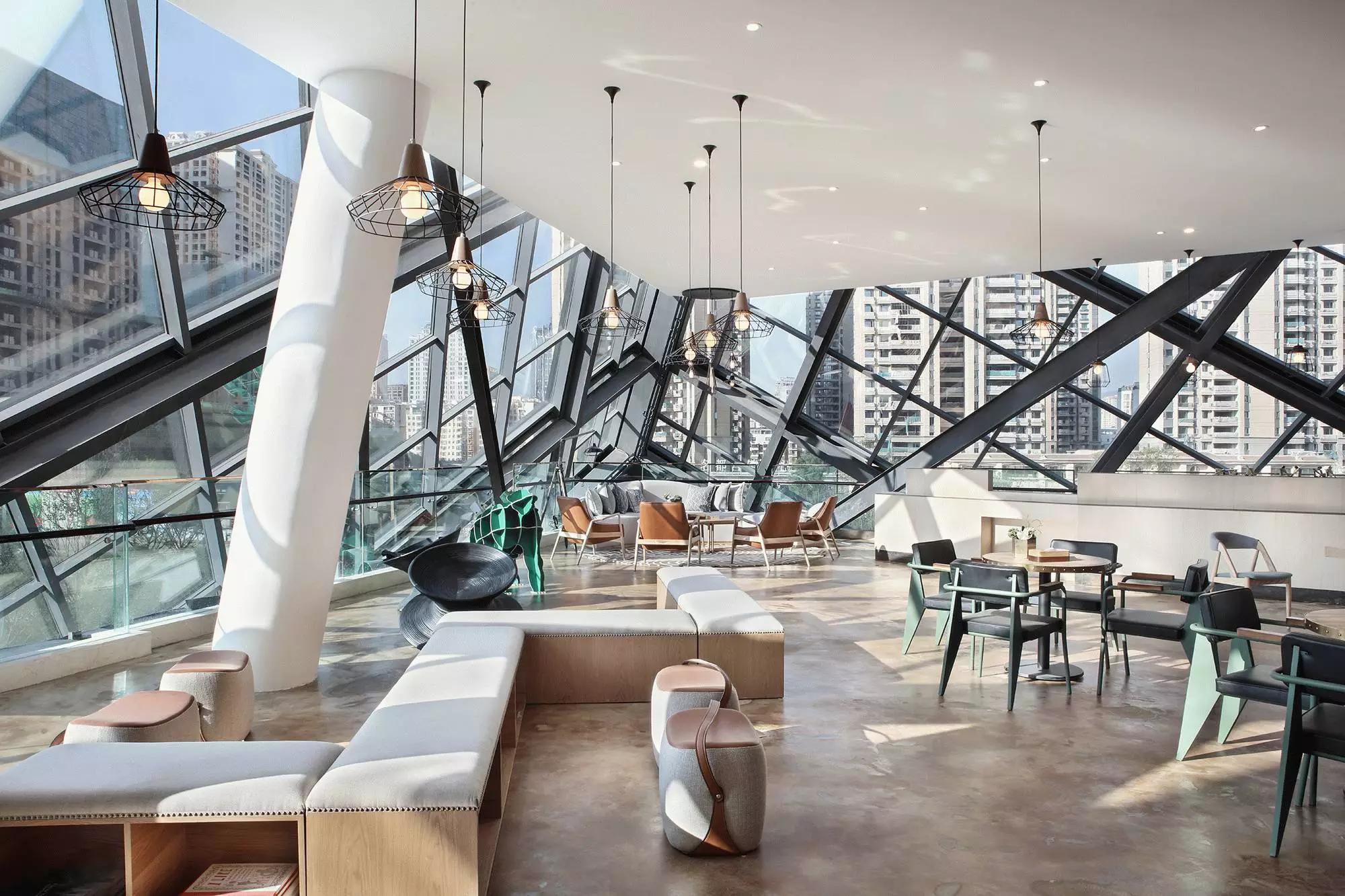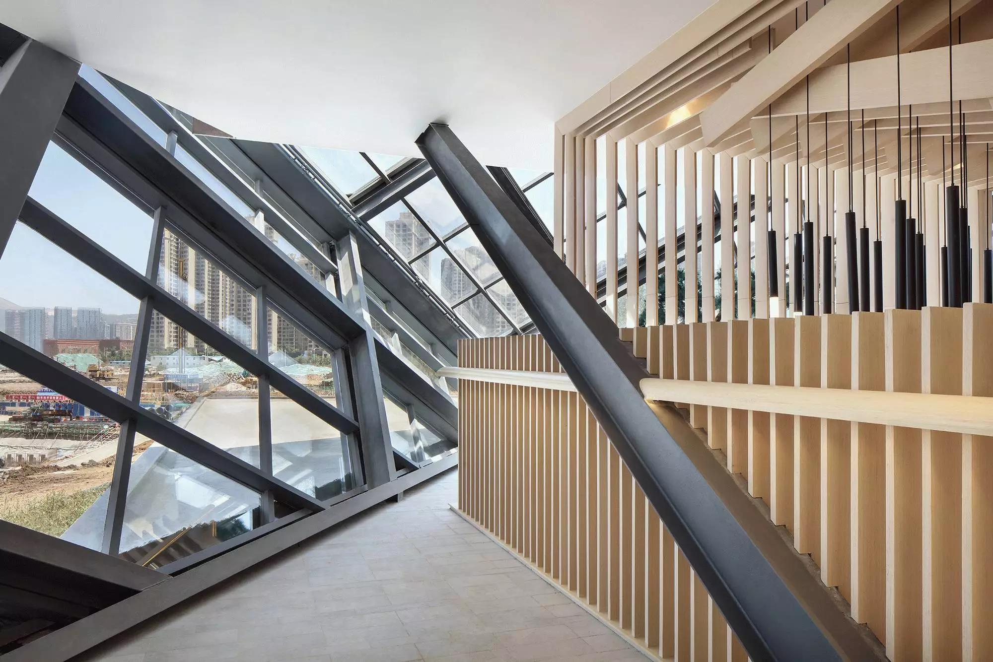 項目原屬昆明聯(lián)想科技城,后由融創(chuàng)地產(chǎn)接盤,他們希望將該建筑打造成為集辦公、商業(yè)、展示等多元化為一體的空間,并使其成為昆明新的城市地標(biāo)建筑。接手本案的主創(chuàng)設(shè)計師是默存設(shè)計的季青濤,作為具有建筑師背景的主創(chuàng)設(shè)計師,從建筑空間的思維從事空間設(shè)計便成為一種必然。在原有“盒子”空間的內(nèi)部,設(shè)計師以木結(jié)構(gòu)對空間進(jìn)行了重組和分割。