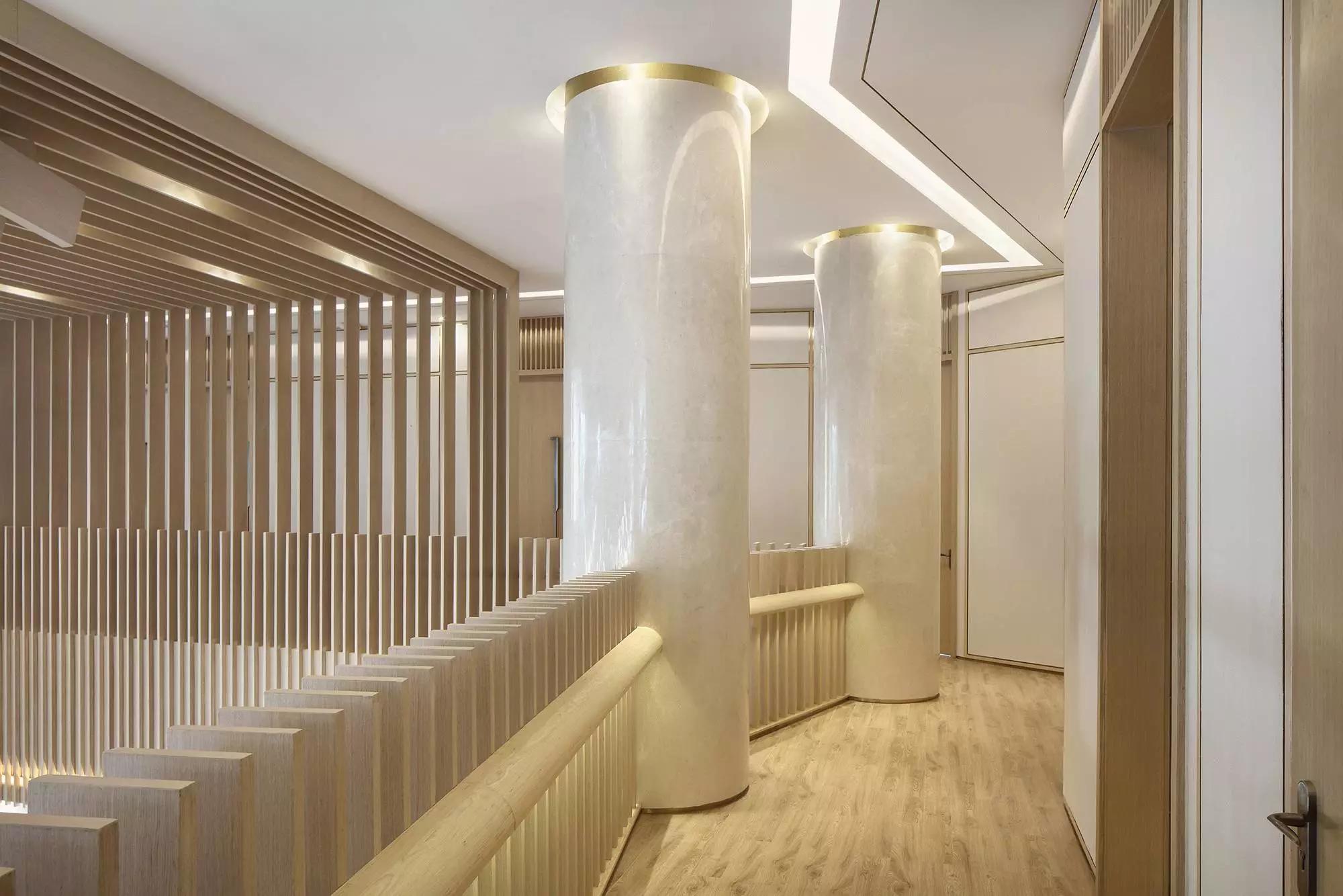 這種處理方式,仿佛原有建筑內(nèi)又套了一個建筑,觀者從外入內(nèi)將面臨到巨大的空間反差。光影從結(jié)構(gòu)衍生出來,也是結(jié)構(gòu)的一部分。采用最簡單的平行結(jié)構(gòu),光影作用下卻出現(xiàn)了復(fù)雜的韻律感受,并根據(jù)光線移動在一天內(nèi)發(fā)生轉(zhuǎn)變。