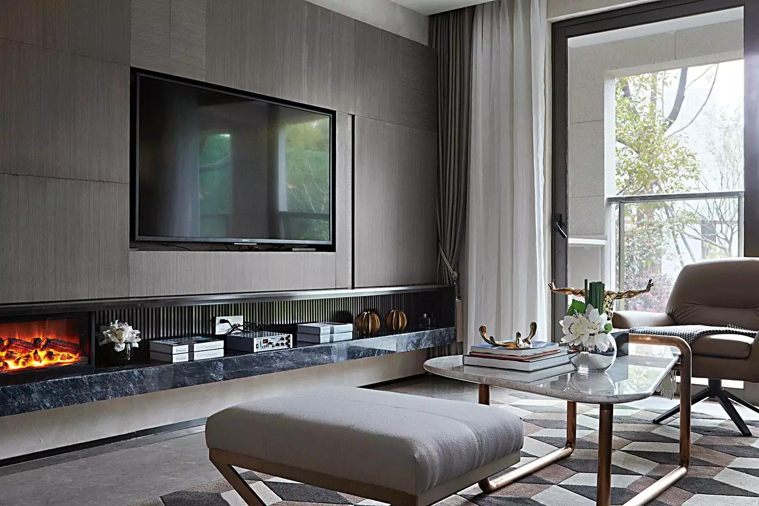 在高級灰的主調(diào)下,任憑灰藍、灰咖、米灰自由穿梭。金屬與大理石外表下的冷酷質(zhì)感、紡織布藝的溫柔親膚與皮革制品帶有的手工溫度,交纏錯綜,剛?cè)嵯酀?。定制壁爐與優(yōu)雅的Minotti沙發(fā),隱約顯露出居所主人優(yōu)越的品味。