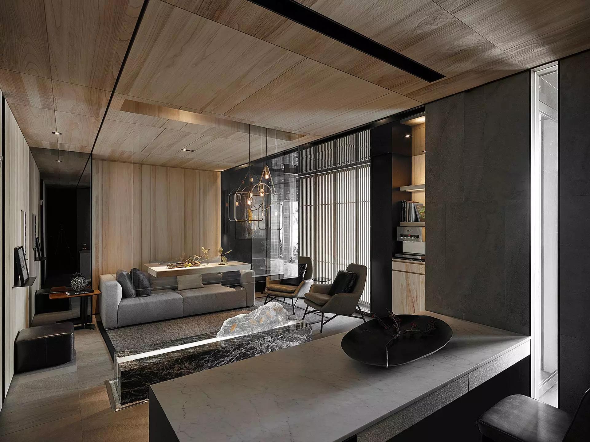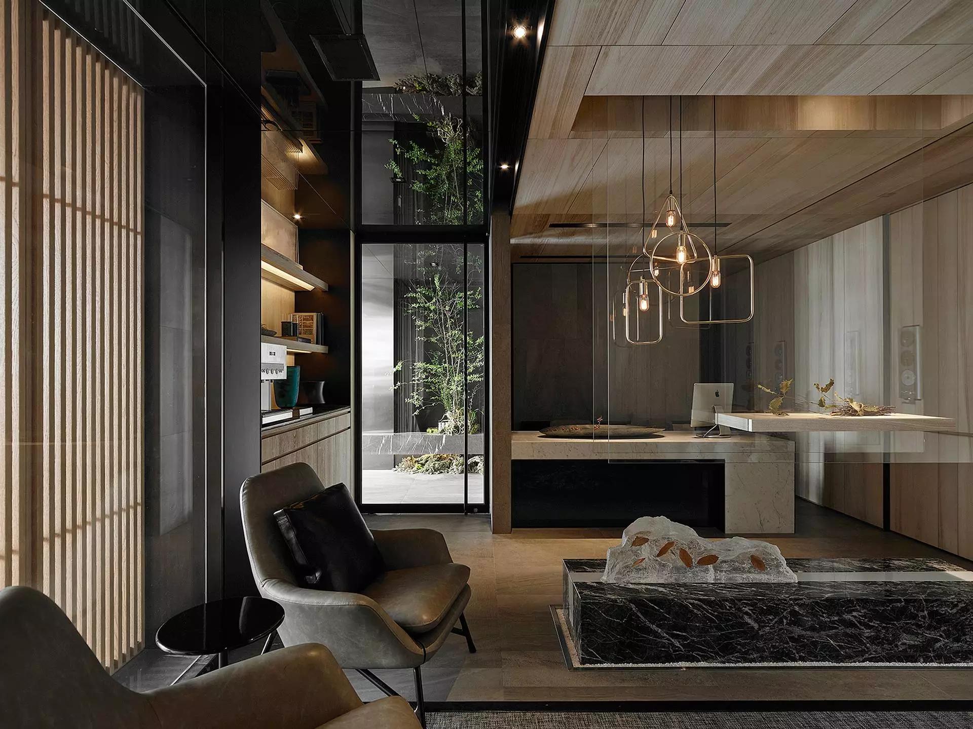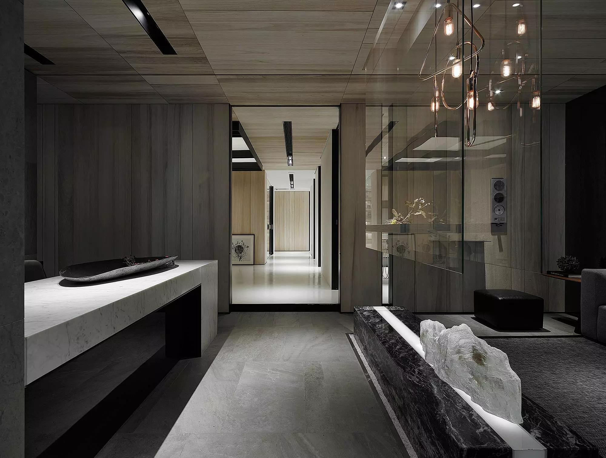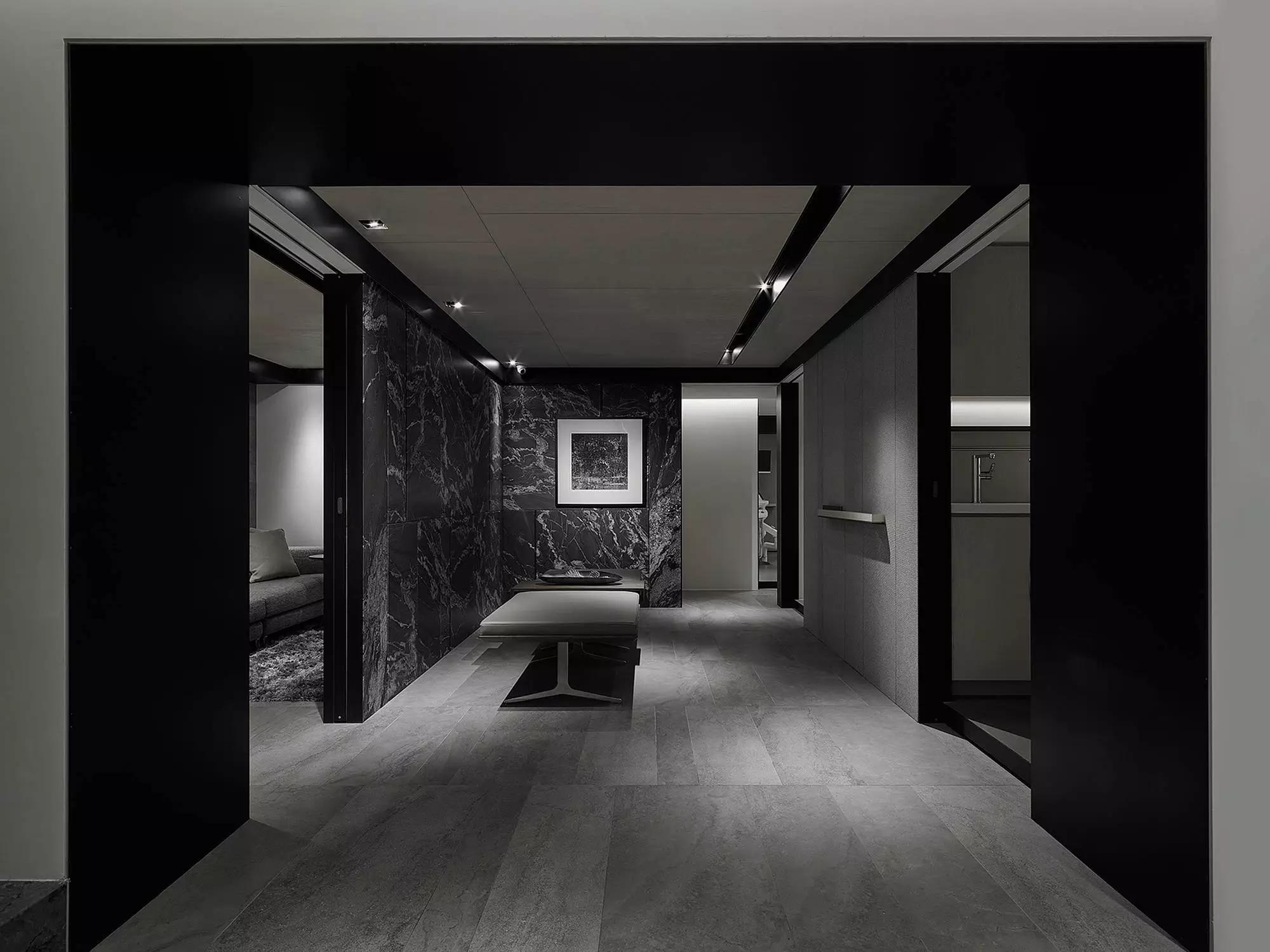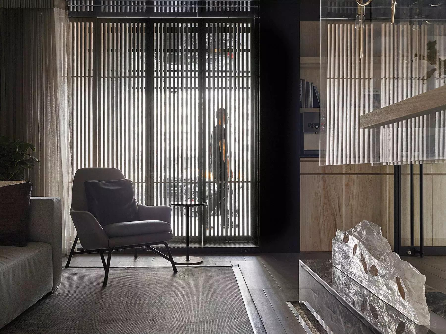 將玄關刻意退縮于室內(nèi)、入口大門轉向,而產(chǎn)生一進一景之空間體驗層次,寬闊的騎樓面積與門口的虛空間,未踏入空間卻已感受沈穩(wěn)安定。