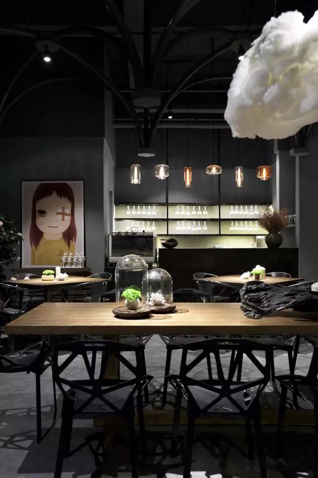 考慮到經(jīng)濟性、便捷的施工工藝與周期,清水混泥土成為了主要的材質(zhì)。由哥特式建筑引發(fā)的圓管結(jié)構(gòu)設(shè)計,在空間中重組、穿插、演繹了一場哥特式感覺的舞臺劇,其高潮莫過于咖啡區(qū)的一朵白色漂浮的云。設(shè)計最大限度的融入了環(huán)保概念,不僅所有的材料都是可以回收利用的,而且定制安裝的方法既減少了現(xiàn)場的污染,也節(jié)省了施工周期。設(shè)計團隊選擇了很多具有趣味性的當代藝術(shù)作品來為空間注入時尚而放松的氣質(zhì),輔以層次豐富的燈光效果,將空間打造成了一個優(yōu)雅而又風趣的雅皮士的感覺。